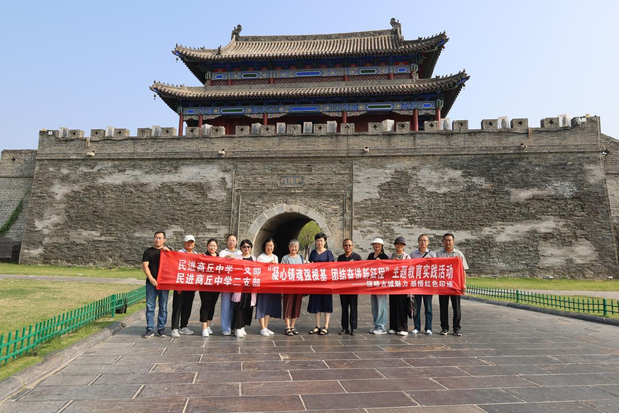 为坚持不懈用习近平新时代中国特色社会主义思想凝心铸魂,增强文化自信,牢记初心使命,9月9日,在“第 39个”教师节到来之际,结合“凝心铸魂强根基、团结奋进新征程”主题教育活动,民进商丘市中学一支部、二支部负责人余乐宝、路欣、李小栓、尚典、张娟带领部分支部会员走进商丘古城,探寻古城墙、古院落的古建筑魅力,追忆解放战争时期的红色印迹。专职副主委谢倩和原秘书长张云平应邀参加活动。