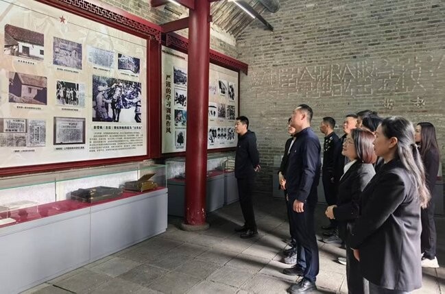 在抗大四分校旧址,大家怀着无比崇敬的心情,瞻仰了白玉石雕刻的彭雪枫将军半身塑像,党员干部面向鲜红的党旗,庄严地重温了入党誓词,认真聆听了抗大四分校建校、发展及彭雪枫将军率部在豫皖地区关心人民生活开挖“新四沟”、印刷《拂晓报》和英勇御敌、浴血奋战等方面的光荣历史和丰功伟绩。通过一张张历史图片资料、一件件珍贵文献实物、一段段生动文字记录,大家仿佛穿越时空,回到了那个烽火连天的年代,感受了新四军当年抗战的困苦境地,体会到当年革命前辈们的艰辛与钢铁般的意志。