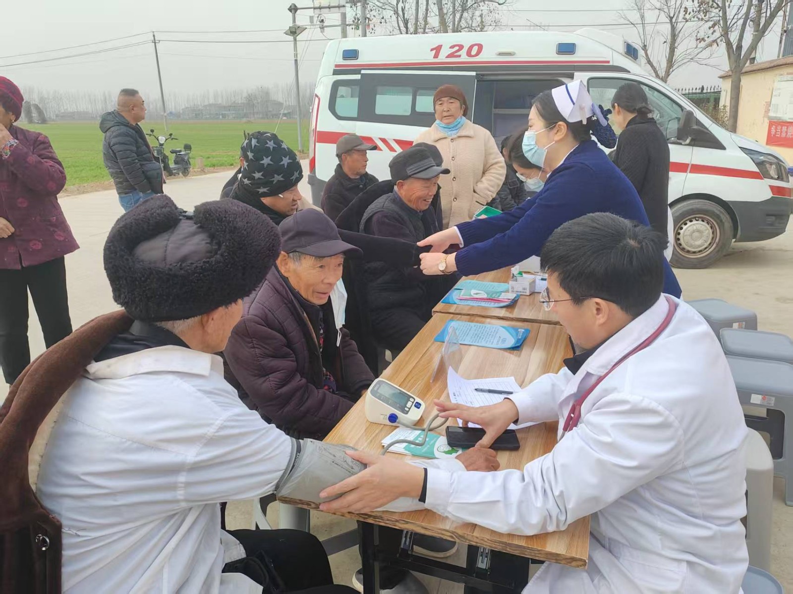 活动现场,来自市三院呼吸科、外科、神经内科等多个临床科室的专家们,耐心接待每一位前来咨询的村民。医护人员有序为大家测量血压、血糖,细致询问病史与生活习惯,针对高血压、糖尿病等慢性病防治,以及冬季呼吸道感染、关节疼痛等常见病预防,逐一解答村民的健康困惑。根据村民个体健康状况,专家们精准给出个性化诊疗建议和科学用药指导,并通过发放健康宣传资料、现场宣讲等方式,普及合理膳食、适度运动、冬季养生等健康知识,引导村民树立科学健康的生活理念。